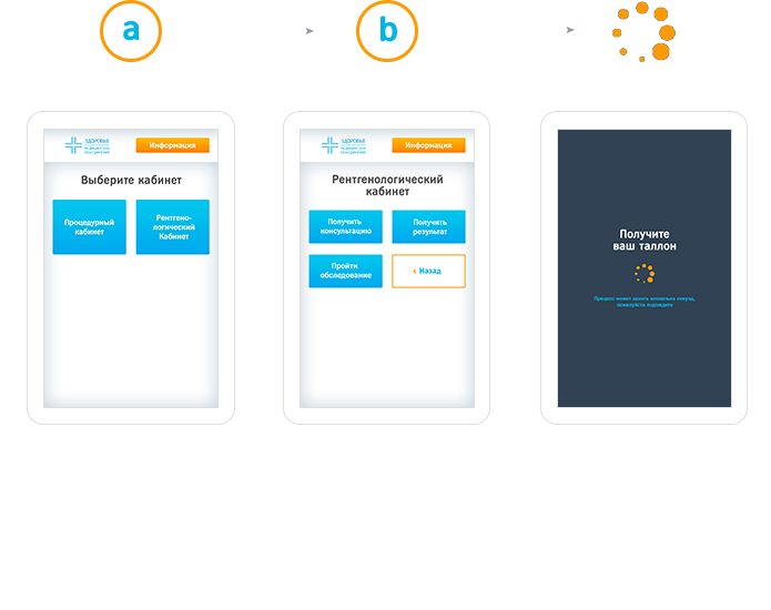First of all a visitor encounters the terminal, which in simple and clear way presents the services of the medical center